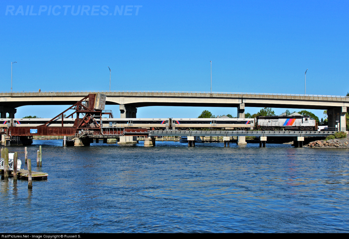 On Memorial Day Weekend, NJ Transit GP40PH-2B 4200 works hard to pull beachgoers over the Shark River drawbridge.