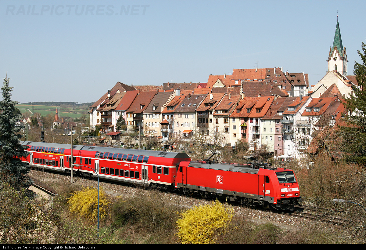| The train from Stuttgart to Singen is running along the old city of Engen. |