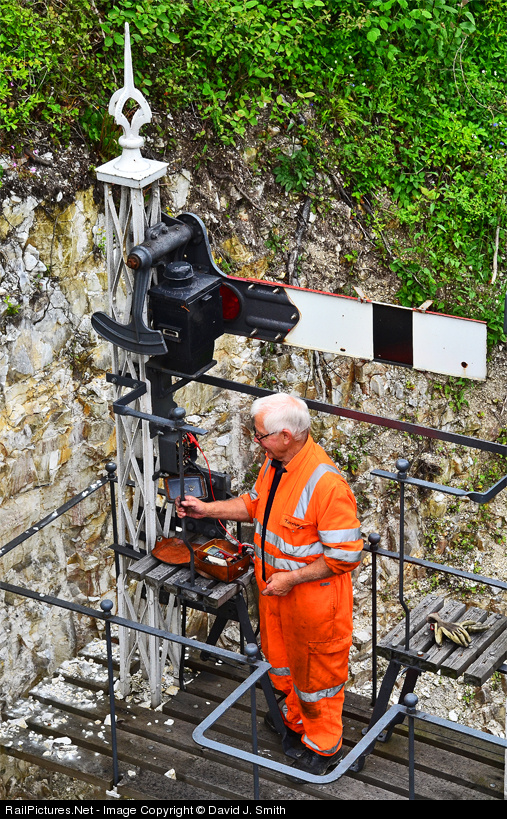 With all the attention focused on the trains at a heritage railway,it is often forgotten that sometimes the most mundane jobs have to be done.Far away from the glamour of the locomotives,a volunteer checks out a signal at the approach to Ropley station on the Mid-Hants Railway.