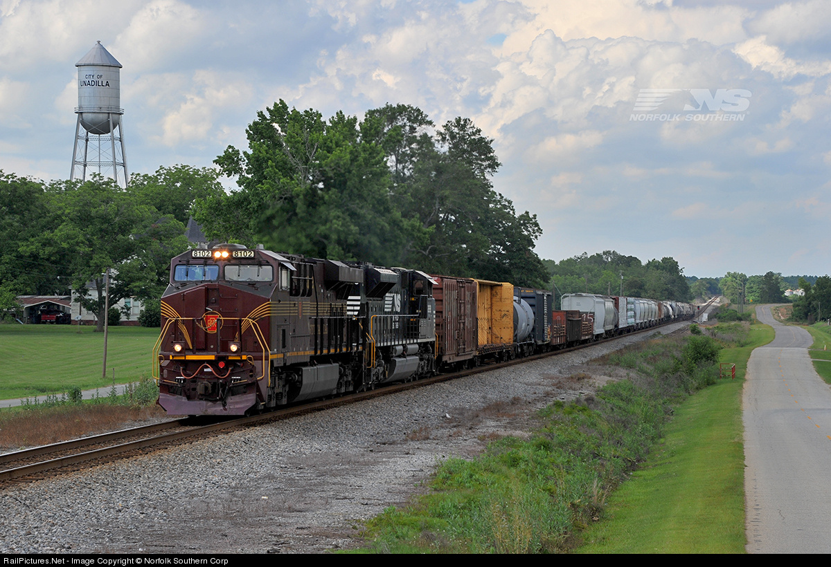 NS ES44AC #8102, the Pennsylvania Railroad heritage unit, leads Georgia Division train 151 south into the small town of Unadilla. 151 operates daily between Macon and Valdosta, Georgia, on the GS&F District. Photo by Casey Thomason. For more information, visit www.nscorp.com