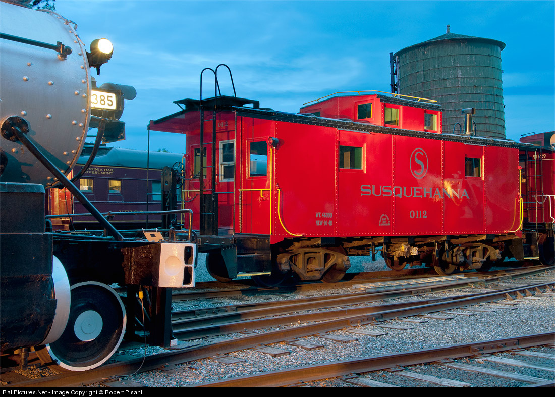 | The headlight from Southern 385 illuminates recently restored caboose NYS&W 0112 at the Whippany Railway Museum. This caboose was purchased from Susquehanna by the Morristown & Erie in 1982 and operated as M&E 4 in regular freight service through 2011. It was donated to the museum in 2012 and was recently restored to it's original NYS&W red and silver paint. Visitors to the museum can actually ride in this caboose as it is often used on seasonal excursion trains. |