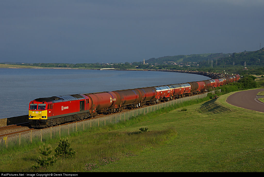 | The early morning sun catches 60063 negotiates the coastal section of line at Pwll between Burry Port and Llanelli. This train can only be photographed in the long summer days as it runs in darkness for most of the year. The train is the daily 05:07 Robertsons (Milford Haven) - Westerleigh (Bristol) |