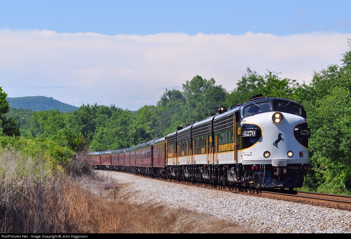 NS A-B-B-A F-units highball east with an inspection trip from Memphis to Chattanooga. The clouds seen in the background are from thunderstorms in central Tennessee.