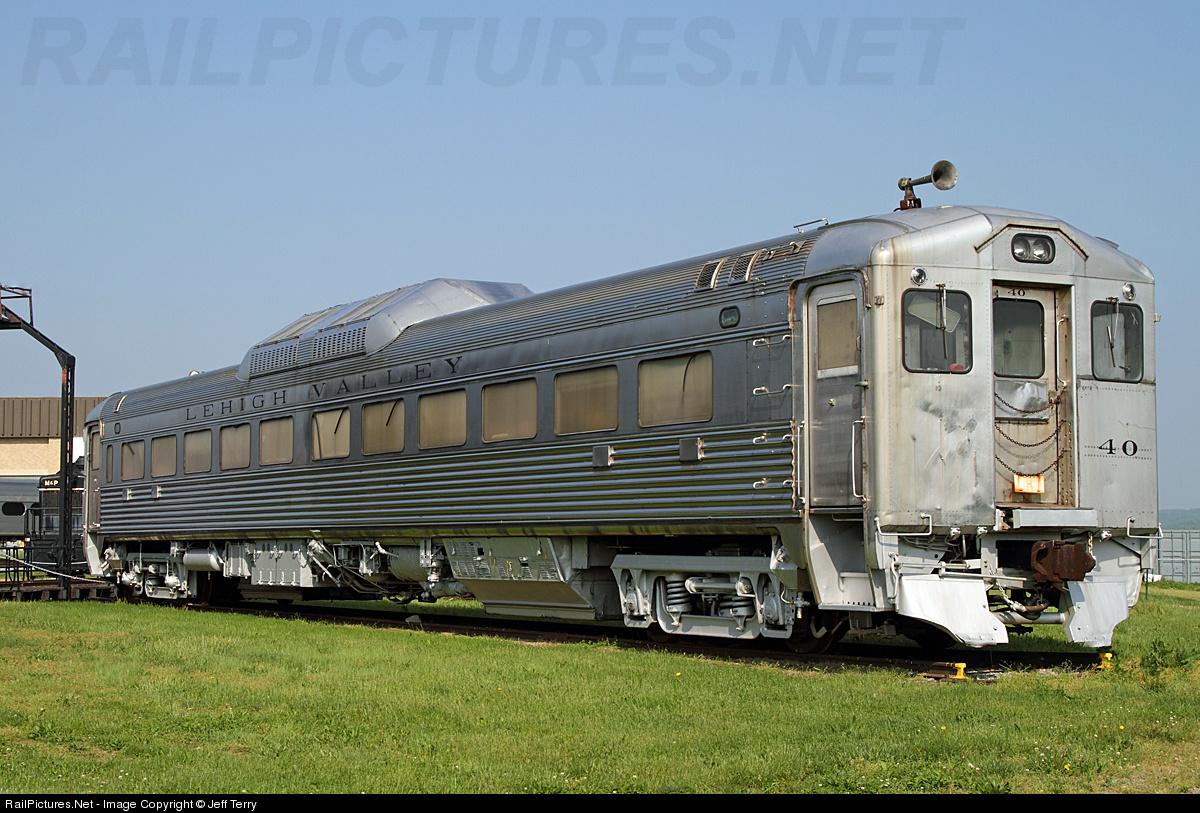 | Lehigh Valley 40 was built by Budd in 1951 for passenger service between Lehighton and Hazelton, PA. It later worked for Reading and SEPTA before being donated by PennDOT to the RRMofPA in 1984. It arrived in operable condition, but has not been run in many years. It's currently displayed in the RRMofPA's yard, which will soon be vacated for the construction of a new roundhouse display building. |