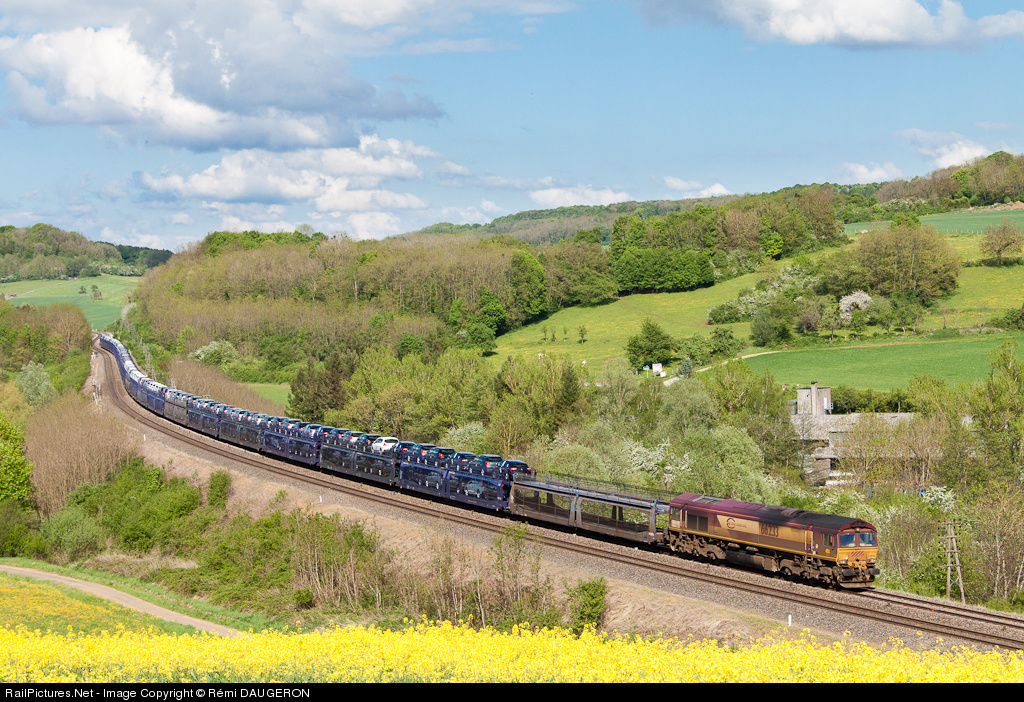| JT42CWR with a long automobils train near Vesoul. This train come from Peugeot and Citroën factory neat Mulhouse. This train usually takes Belfort-Besancon-Dijon line but it was closed this week-end for track maintenance.