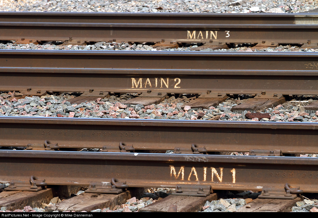 The busy BNSF Transcon through Amarillo has three main tracks, duly marked as to which one is which, providing enough capacity for all the trains zipping through town.