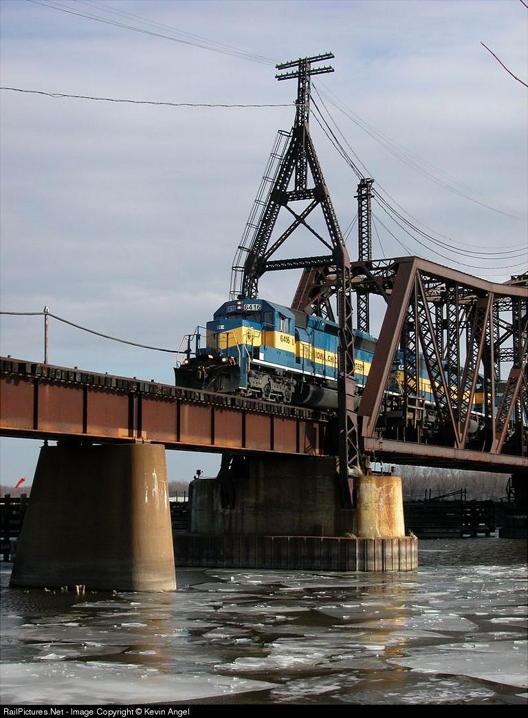 | ICE 6416, ICE 6427, and ICE 206 crossing the Mississippi river swing bridge from Savanna Illinois to Subula Iowa on December 27th, 2003. |