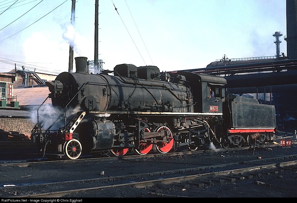 A relatively rare (even for 1986) SY 2-6-2 takes a break from switching the Anshan steelworks.