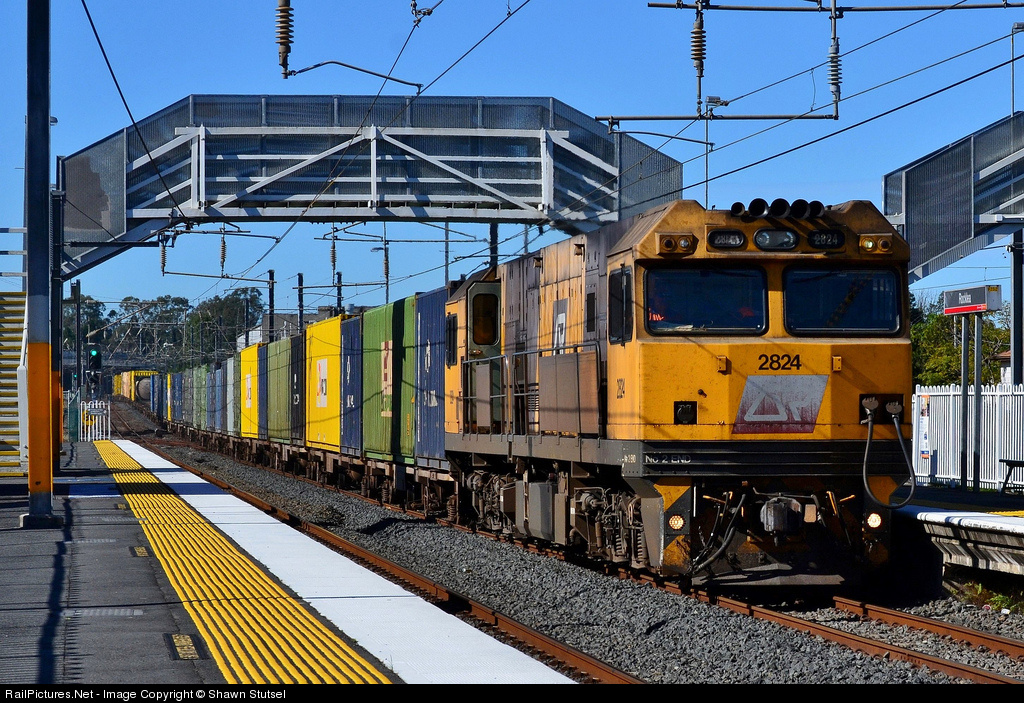 | Aurizon's 2824 powers through Rocklea Station, Brisbane with Y355, Intermodal Service, Northwards... |