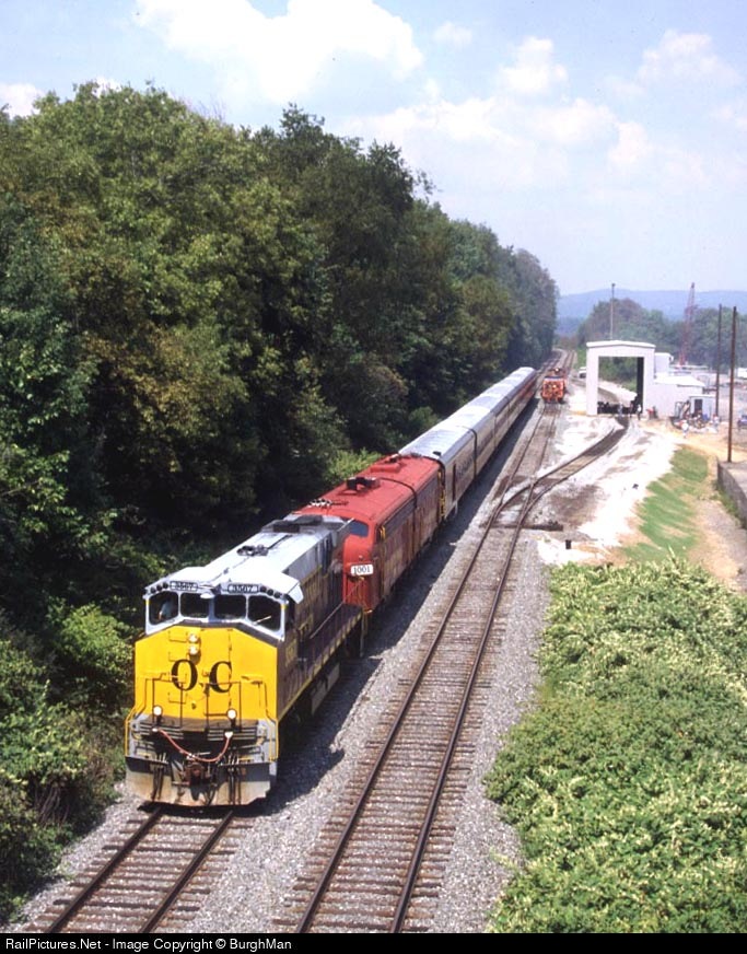OC 3567 and two F-units lead a deadhead passenger move past the Samis Powerplant Dumper on Norfolk Souther's River Line near Toronto