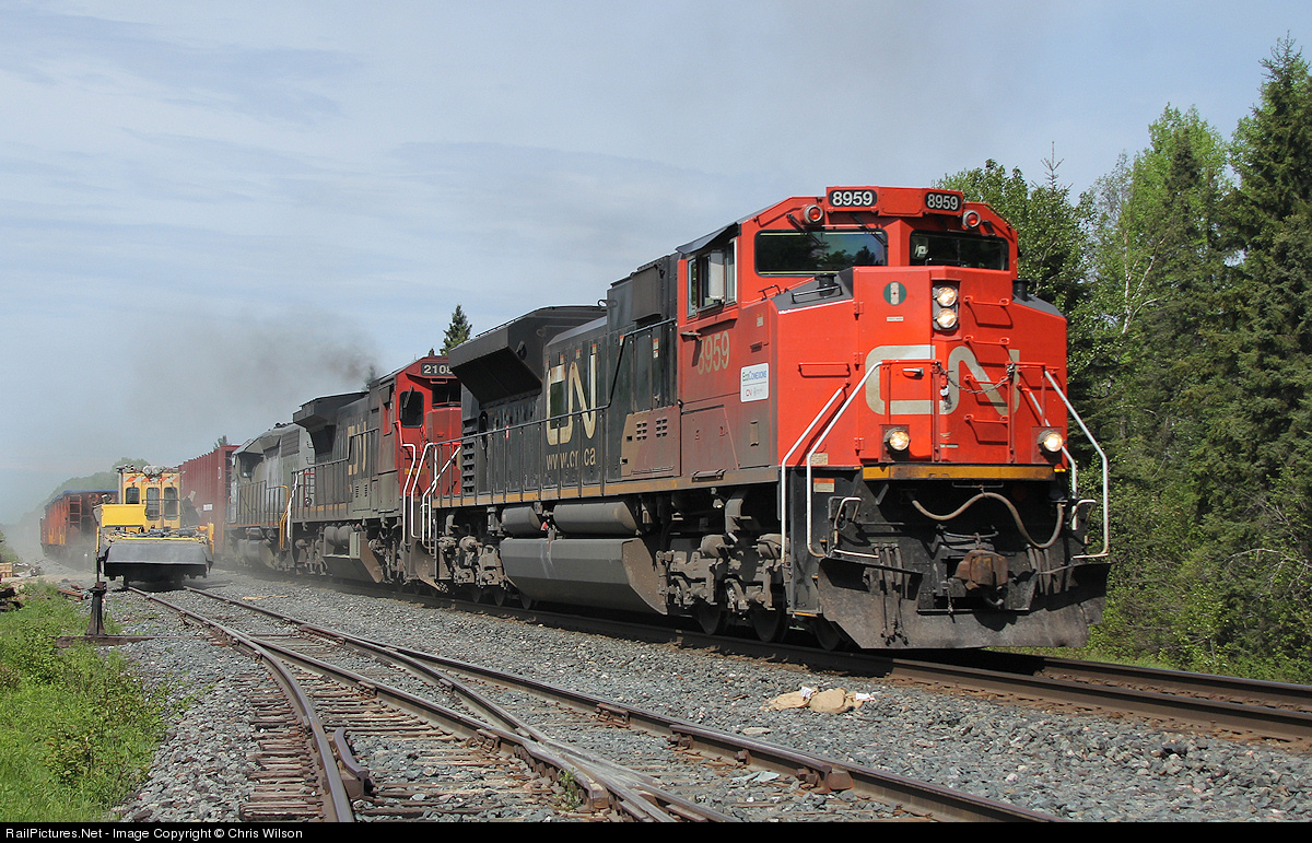 | Blame the broom operator! Blame Me! I must admit with little shame I am behind dirtying up the locomotives! CN 8959, CN 2108, GTW 5945 get a little dirtier after kicking up dust from fresh ballast moved around by yours truly! |