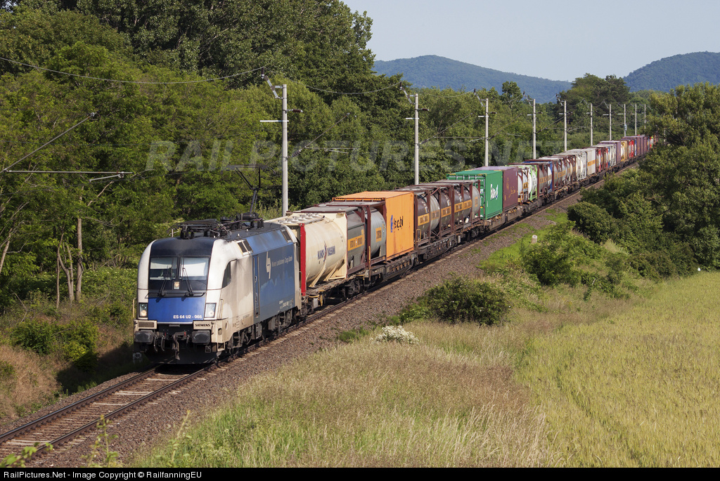| The ES 64 U2-066 runs with detoured inter-modal freight train near Herend station.With a significant river flooding has occoured recently along the river of Danube, a lot of railway lines are in massive flood damage accross the Europe. The largest devastation has been observed between Komárom and Szőny in Hungary, where one of the busiest railway line crosses through. The freight trains have been detuored since then, and their route is Budapest-Székesfehérvár-Celldömölk-Győr with amazing places, through Bakony hills. |