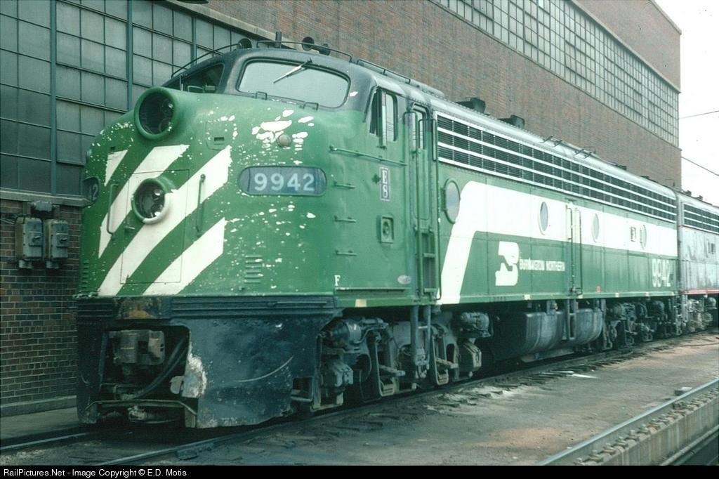 RailPictures.Net Photo: BN 9942 Burlington Northern Railroad EMD E8(A) at Denver, Colorado by E.D. Motis