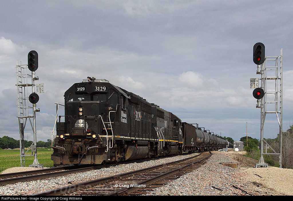 | The IC 3129 and 3107 were put together at Kirk Yard to pull the M337 to Waterloo. A pair of black IC geeps on CN core train is pretty unusual anymore. Here M337 passing thru Hilltop on the east side of Waterloo with a blast from the past. |