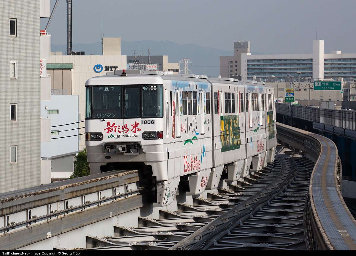 Train # 06 of the 1000 series of Osaka Monorail near the Dainichi station. The 21,2 km long line from Osaka Airport to Kadoma-shi opened between 1990 and 1997.