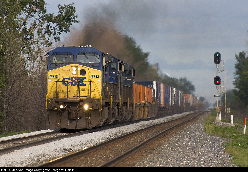 RailPictures.Net Photo: CSX 7713 CSX Transportation (CSXT) GE C40-8W (Dash 8-40CW) at West of Hamler, Ohio by George W. Hamlin