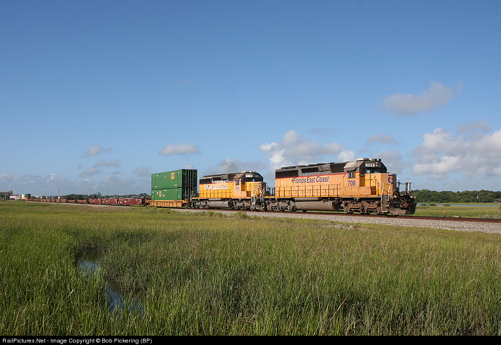 RailPictures.Net Photo: FEC 708 Florida East Coast Railroad (FEC) EMD SD40-2 at St. Augustine, Florida by Bob Pickering (BP)