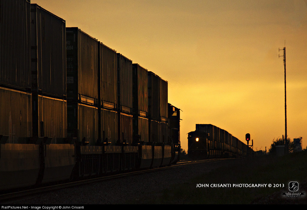 The DPUs on two UP stack trains cross paths at West Ogden after meeting each other around sunset.