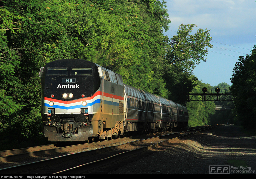 RailPictures.Net Photo: AMTK 145 Amtrak GE P42DC at Larimer, Pennsylvania by Fast Flying Photography