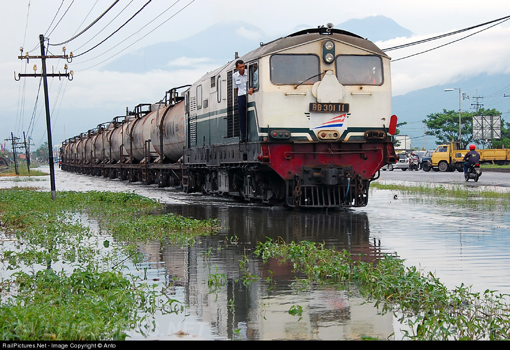 | Hard rain fallen a day before and still raining when I came hear. Heard from my friend that all the trains which passing by this location have to haul by diesel hydraulic locomotive. This kind of locomotive still use for the flood case like this, it's very very effective when the diesel electric type can't do the job, crossing a high water level. Now it's very usefull |