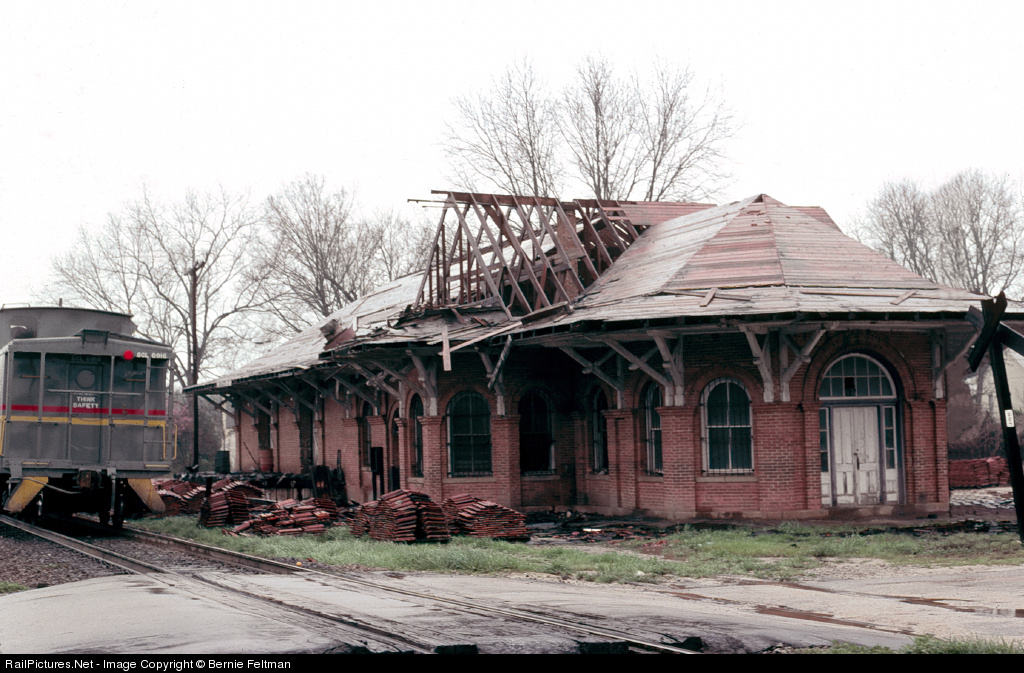 A dreary day became a lot more dreary after 322's train cleared the crossing and the demolition of the ornate depot came into view. Seaboard Coast Line caboose #916 brings up the rear of Atlanta bound train #322