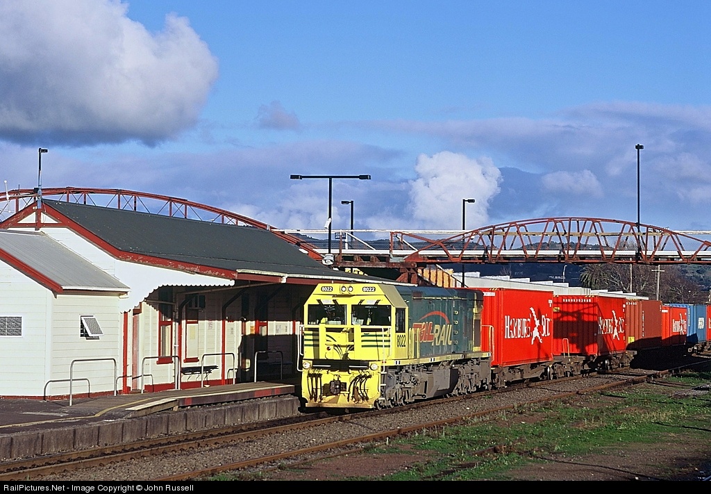 | MetroPort train from Tauranga powering through Papakura. This station has entirely changed now with the electrification of Auckland rail network. The building was relocated nearby. This is the terminus for the Spanish built electric trains that start running in 2014. |