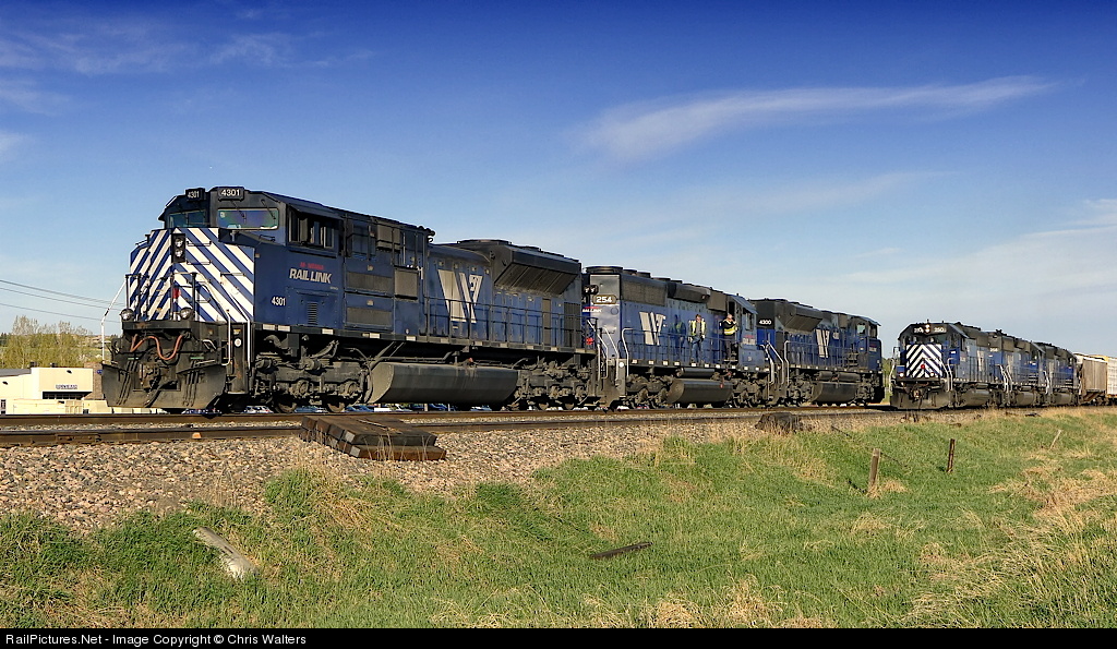 SD70ACe locomotives 4301 and 4300 sandwich SD40-2XR 254, having just arrived back in Bozeman, Montana. The helper set trio are about to assist the eastbound manifest train in the background (led by SD40-2 unit 250 and SD40-2XRs 258 and 265) up to the tunnel atop Bozeman Pass.