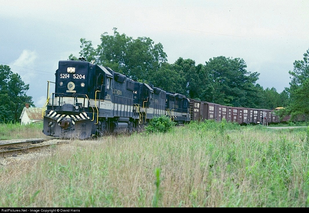 | A Southern freight heads north over what was once the Central of Georgia's main (via trackage rights over the A&WP north of Newnan) between Atlanta and Columbus. This line is mostly gone now. |