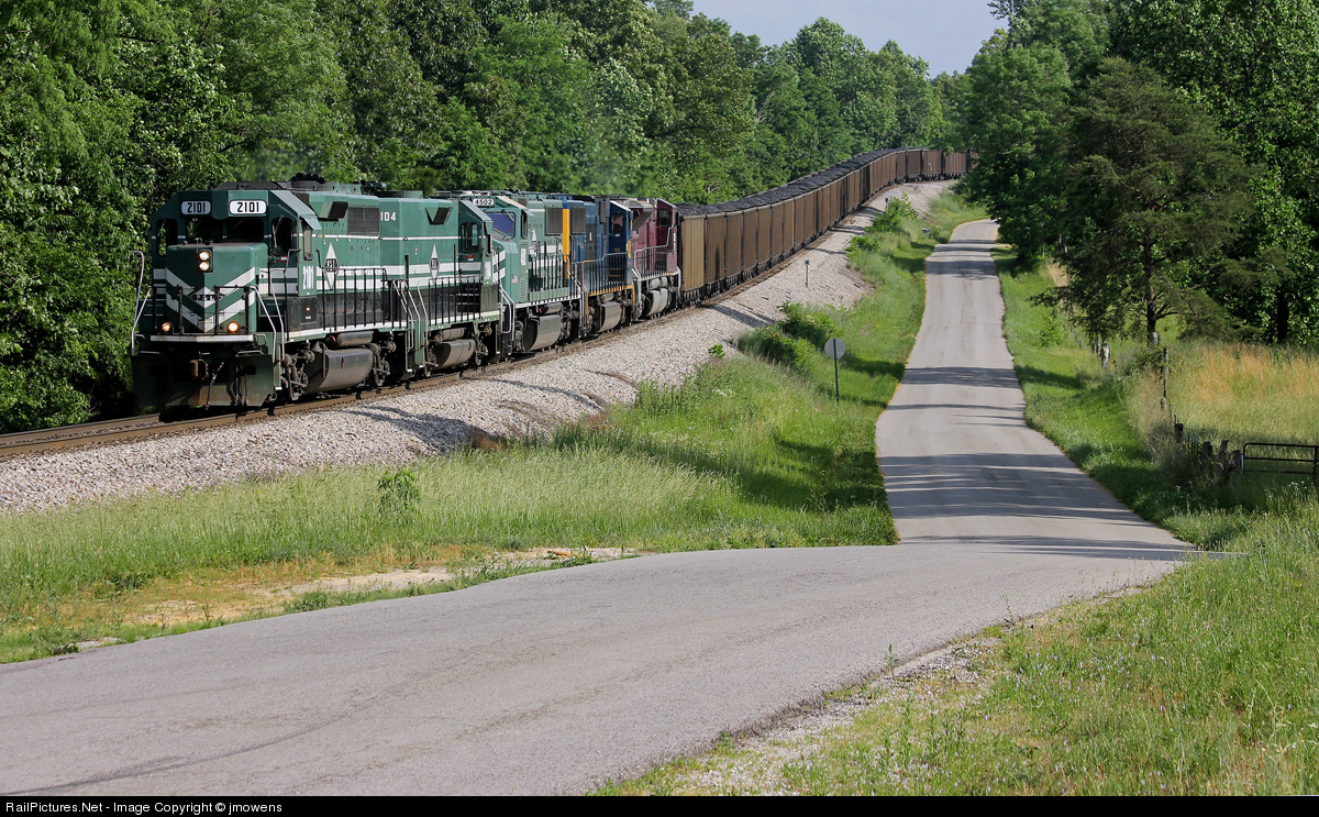 Showing that the former Louisville District of Illinois Central's Kentucky Division is anything but flat and straight, LG4 climbs upgrade at Summit with loads for LG&E's Cane Run generating station. This day's consist includes GP40-3/Road Mate 2101 & 2104, former CSX SD70MAC's 4502 (painted) & 4516 (patched) & CEFX SD9043MAC 121.