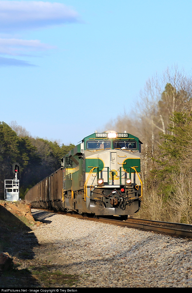 The NS 8099 Southern along with the NS 1068 Erie trailing head through Pine Hall, NC just north of the spur for Belews Creek Steam Station, which is the destination for it's 105 car load of coal.