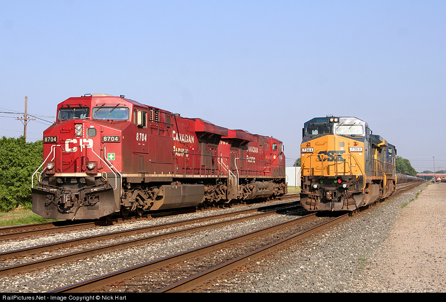 | As some CP power sits around at Hohman, a pair of CSX GE's make way to their Barr Yard, via the IHB/CSX connection at Calumet Park. |