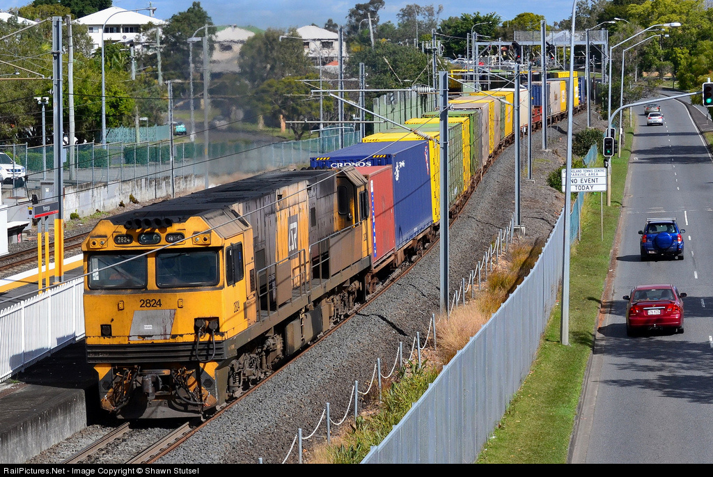 | Aurizon's 2824 passes through Yeronga, Brisbane with YC77, Intermodal/Container Service, Northwards... |