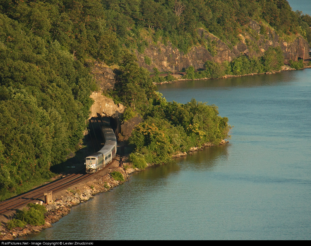 | Through one of the short tunnels along the Hudson, this Metro North northbound carries commuters home and throws in the gorgeous scenery in free. |