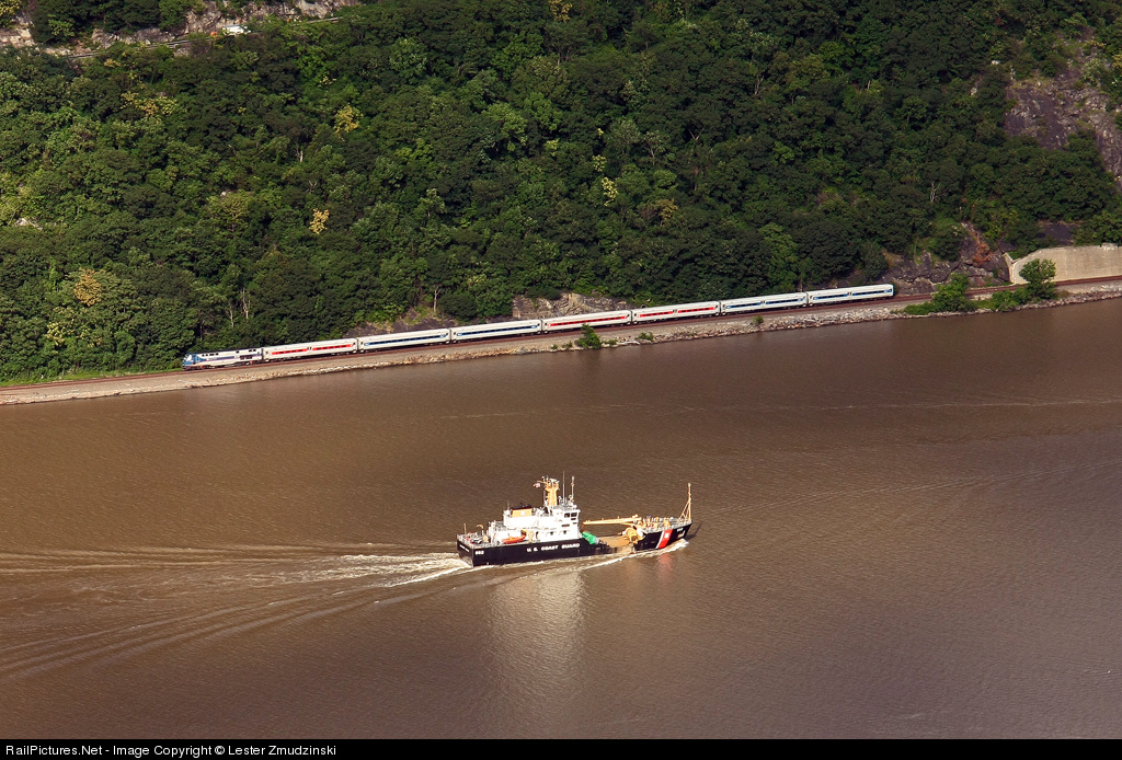 Commuters head home while the Coast Guard checks buoys on the Hudson.