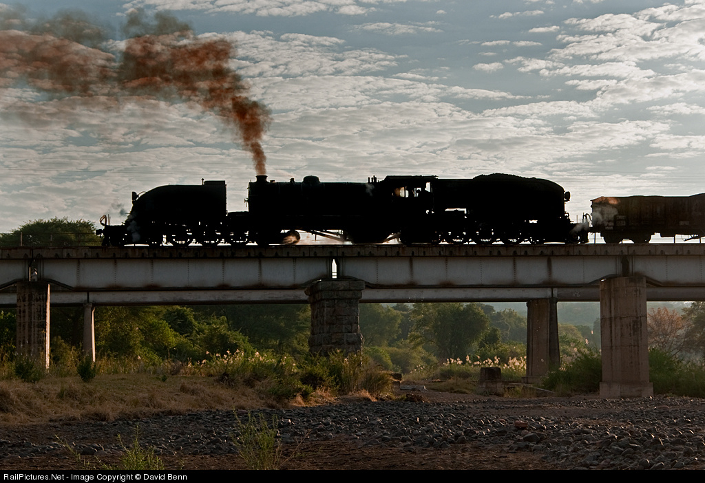 South Africa used Garratt locomotives for mountain railways, Zimbabwe used them for mainline operations. One of the last working 15As poses on Deka River Bridge for photographers. Charter by Geoff's Trains.