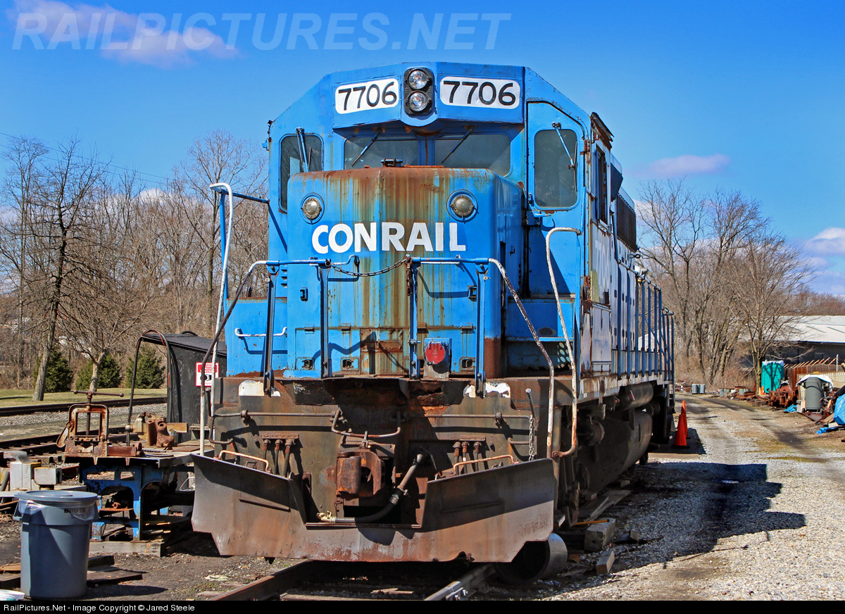 West Chester Railroad GP38 7706 soaks up some rays on the storage track in West Chester, PA on a warm Spring afternoon. The unit is ex-PPLX 7706, nee CR 7706 and PC 7706. Thanks to the WCRL for touching up her white paint. Unfortunately, this unit will too be coated in new paint...black and grey WCRL paint that is, when its mechanical issues are fixed and its ready to enter passenger service on the railroad. But at least we can enjoy the blue paint for now.