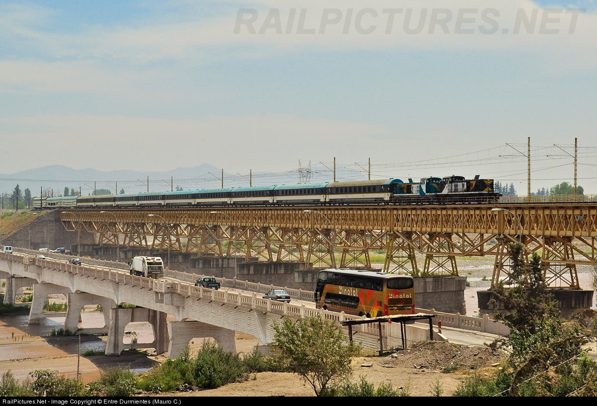 | Crossing the railway bridge over the Rio Maipo, passenger train Santiago - Temuco - Santiago, in this case in test equipment. |