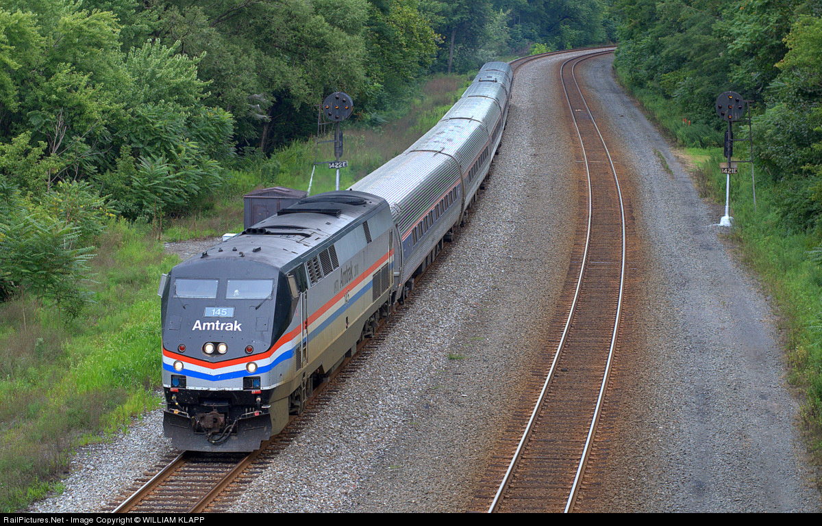 RailPictures.Net Photo: Amtrak 145 Amtrak GE P42DC at Thompsontown, Pennsylvania by WILLIAM KLAPP
