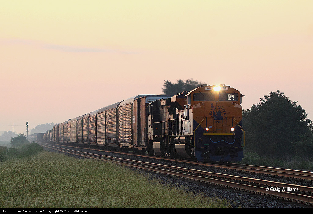 Westbound 15E approaches the CSXT Toledo Sub at Leipsic at sunrise. This westbound is working west from Bellevue, OH, to Ft. Wayne, IN, and on west to a Union Pacific connection at Sidney, IL.