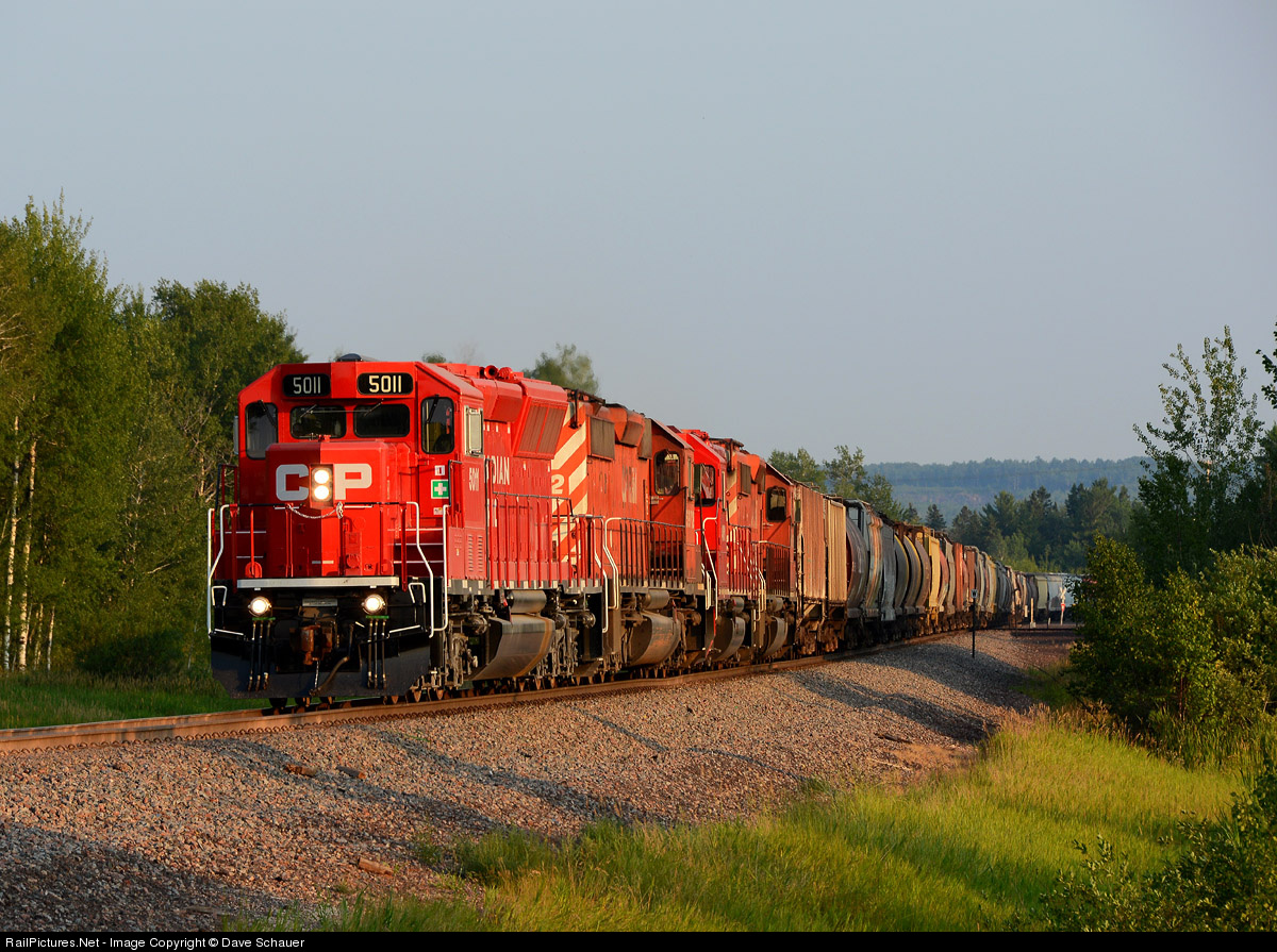 | Early evening catches CP train 483 about to exit BNSF's Hinckley Subdivision as its nears the end of its run at Stinson Yard in Superior, Wisconsin. I bet the crew enjoyed the air conditioning of 5011 on this warm and humid summer day. |
