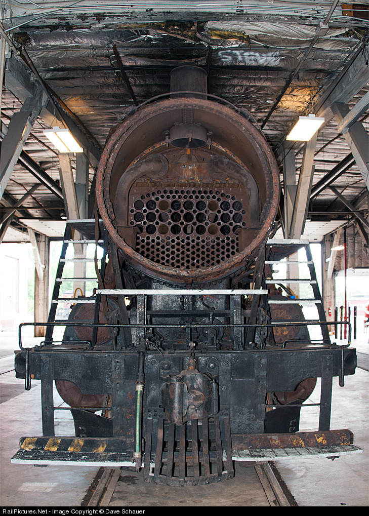 | A front view of D&NE 28 as it undergoes restoration to operating condition at the shops of the Cloquet Terminal (successor to the D&NE). The former DM&IR consolidation is owned by the Lake Superior Railroad Museum in Duluth. |