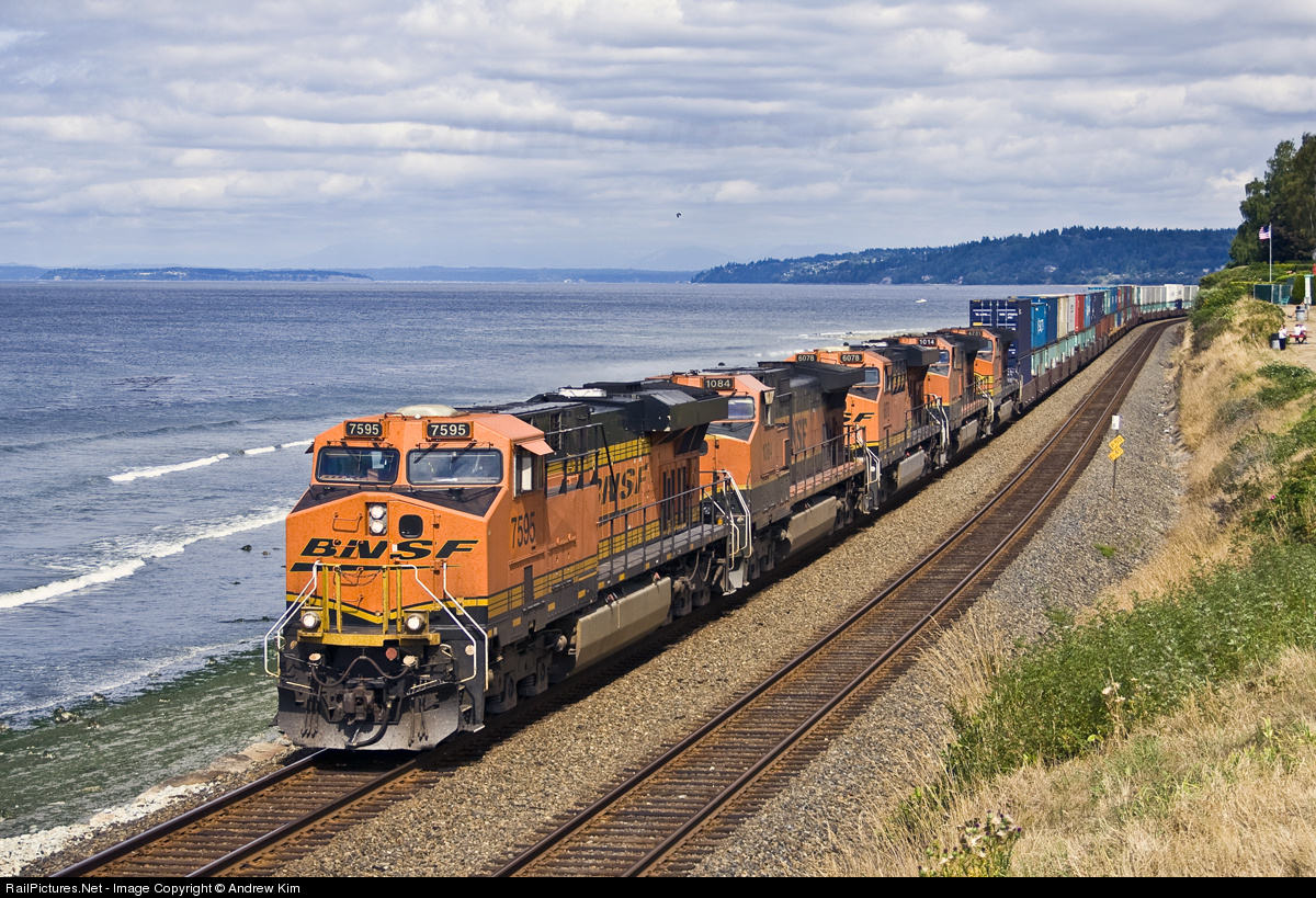 RailPictures.Net Photo: BNSF 7595 Burlington Northern Santa Fe GE ES44DC at Edmonds, Washington by Andrew Kim