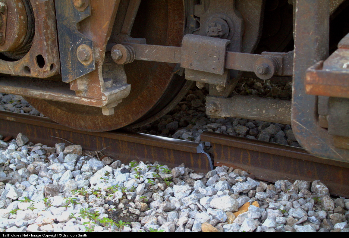 | Broken rail underneath the derailed CBNS 5009 at Cruger, IL. Talked to the engineer of the train and he said he believes the broken rail was the result of the derailment. This was only a minor derailment with only one wheel on the engineers side derailed. The broken rail was on the conductor's side of the locomotive. |