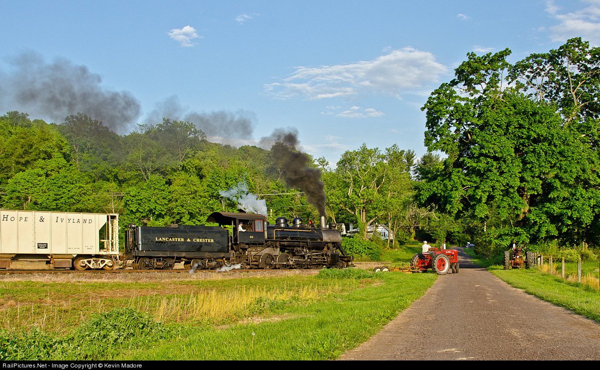 Stop! Look! Listen!. A Lancaster & Chester Engineer pulls hard on #40's whistle cord to warn a local farm hand that the left turn he's taking with that Farmall might just be his last if he doesn't get on the brakes pretty quickly. The tractor operator's apparent complacency is somewhat understandable, as the long hours in the saddle can not only be fatiguing, but the constant din of the machine can really take a toll on your hearing as well. Fortunately, this is a Lerro Productions Photo Charter, and everything here is being done for the cameras. Never the less, there's an important message here. ALWAYS EXPECT A TRAIN!