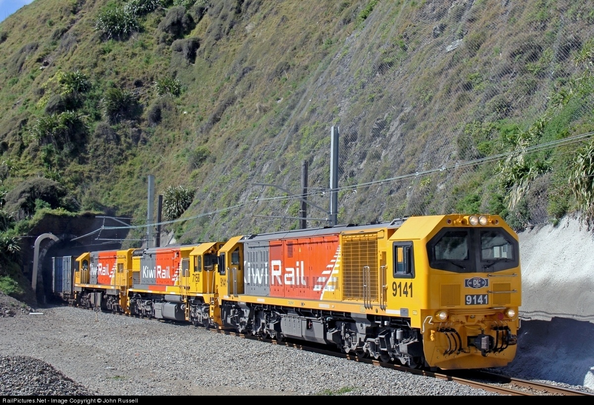 | The loco lash up in this scene represents decades of motive power in New Zealand. The DL class is the first Chinese built diesel exported to a western railroad. DFT 7158 started life in 1979 and DC 4058 as a DA EMD G12 c. 1955. The line at a 2% grade here was built with brick tunnels in the 1880's. |