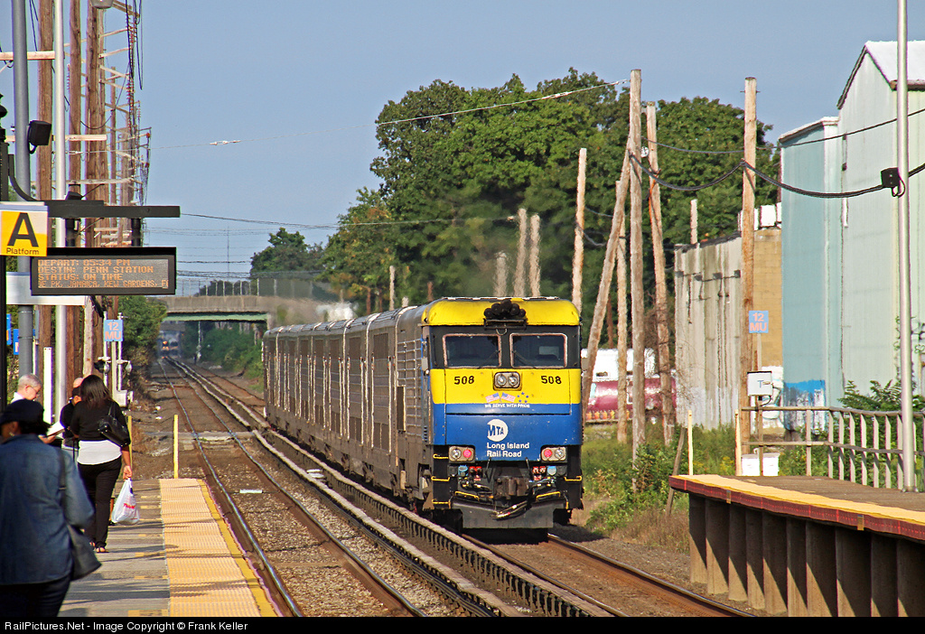 | I recently took my daughter to start her college education at Hofstra University, in doing so I was able to add a new railroad to those that I have photographed, the Long Island Railroad. It is my understanding that this is the worlds busiest commuter railroad operating some 745 trains daily. Rush hour was a sight to behold. This is a dual mode locomotive operating here as an electric drawing current from the third rail but also can operate as a more conventional locomotive where ever they have non-electrified lines. |