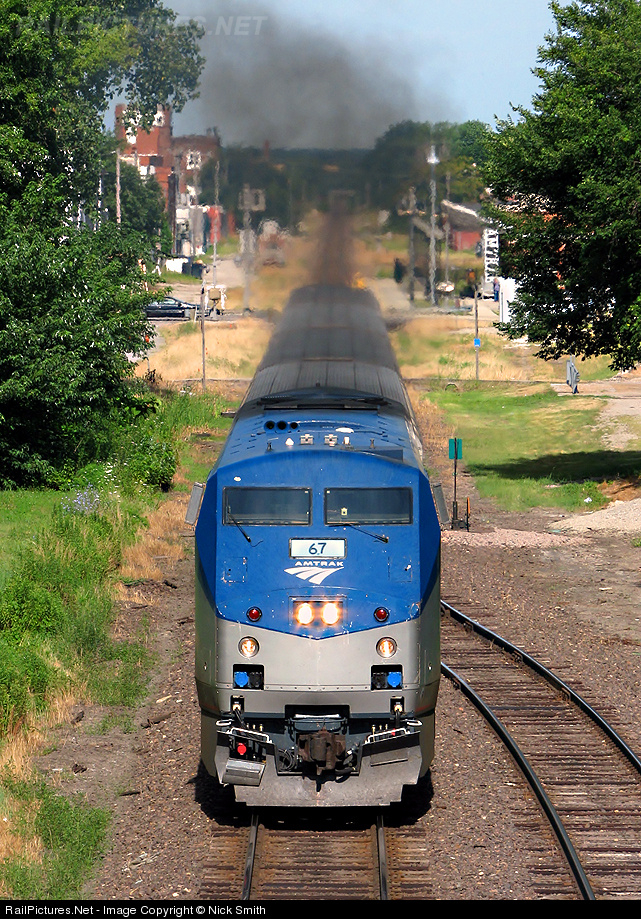 RailPictures.Net Photo: AMTK 67 Amtrak GE P42DC at Sedalia, Missouri by Nick Smith