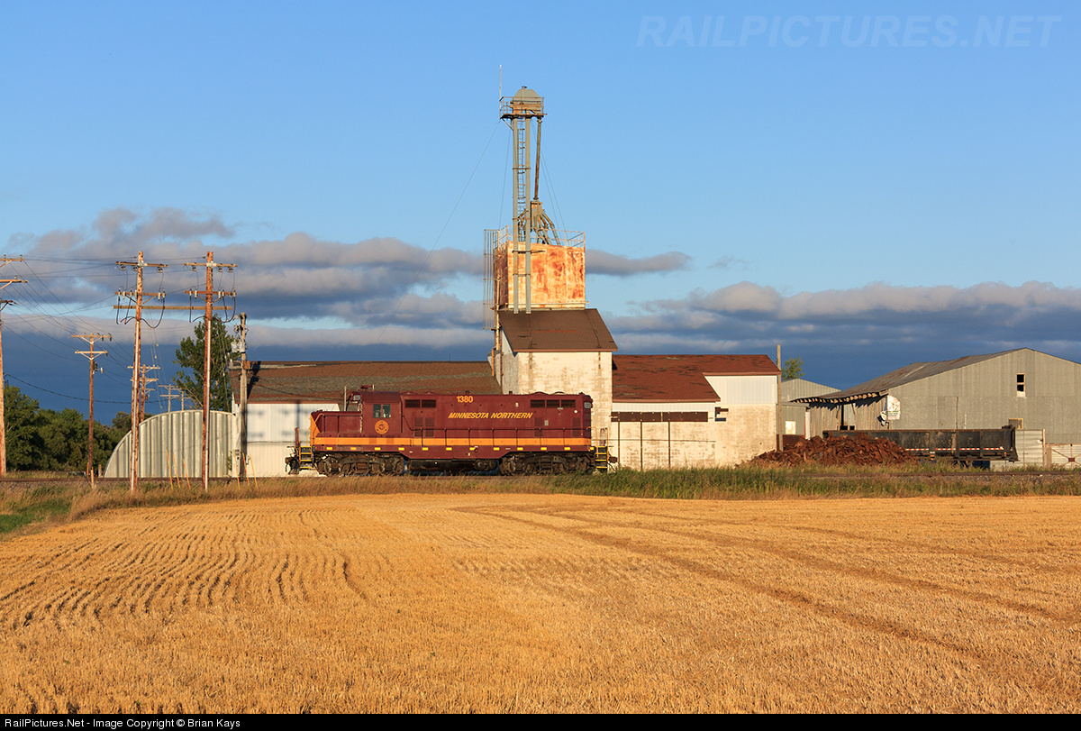 | Minnesota Northern 1380 sits south of Dakota Junction adjacent to Evan's Steel & Scrap, a customer along the Warroad subdivision that receives gondolas for shipping out scrap metal. The wheat field in the foreground was harvested a couple of days prior to this photo. |