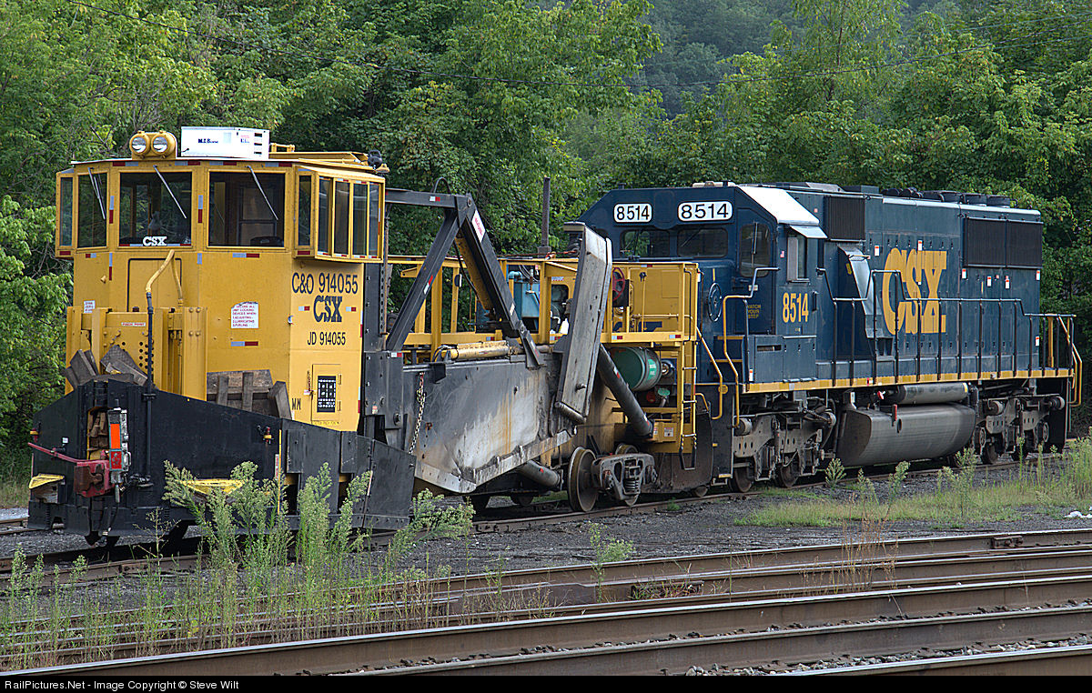 CSXT 8514 sits with spreader C&O 914055 in the Ronceverte Yard. Interesting how the spreader still has C&O on the side.