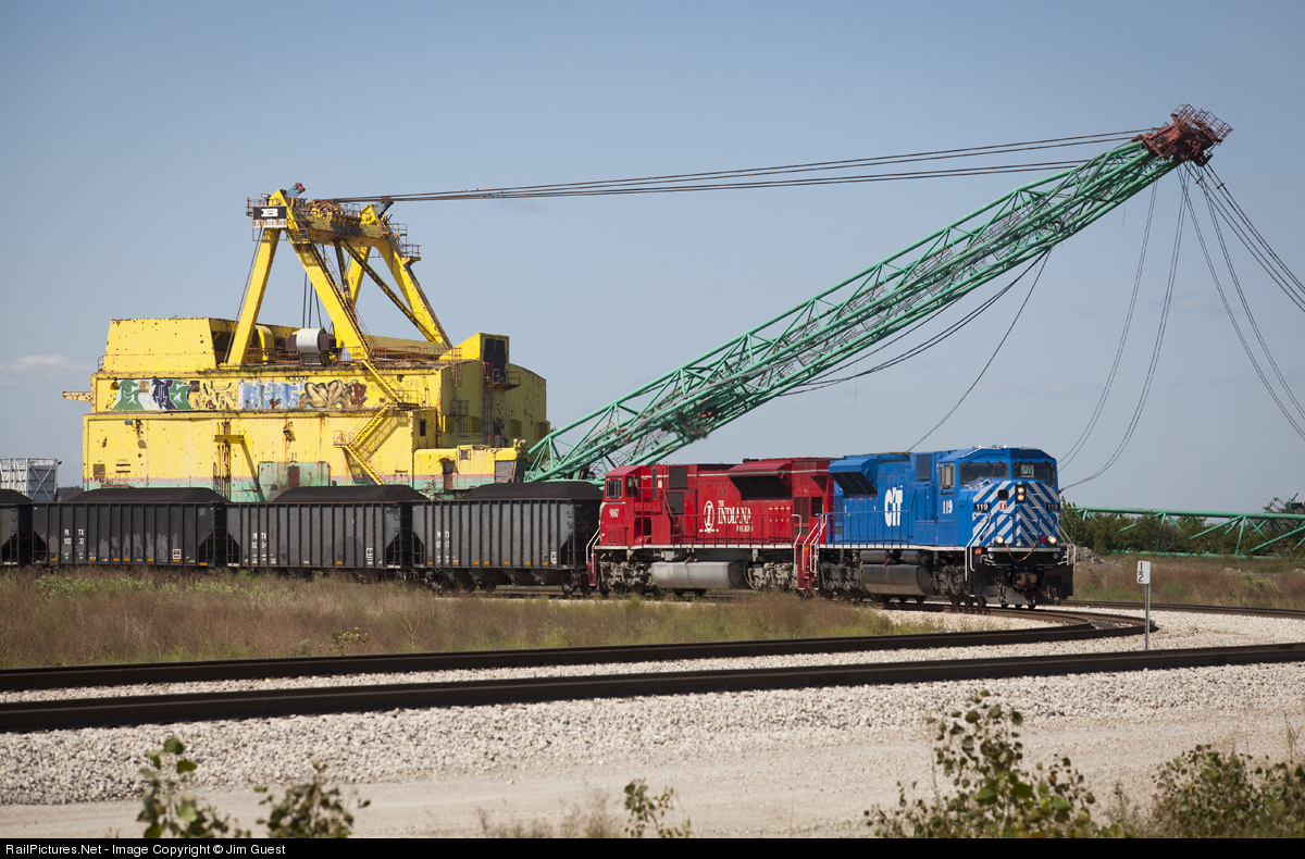 Indiana Railroad train CBRFA (Coal loads, Bear Run to Fayette) pulls out of the Bear Run Mine past a retired Peabody drag line.